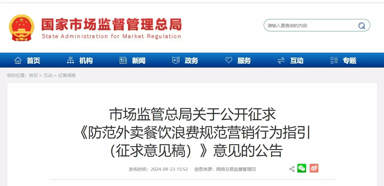 市場監管總局 9 月 23 日發布公告,公開征求《防范外賣餐飲浪費規范營銷行為指引(征求意見稿)》(下稱《征求意見稿》)意見。市場監管總局鼓勵外賣商家合理設置起送價格并積極提供小份餐品具有多方面的積極意義。