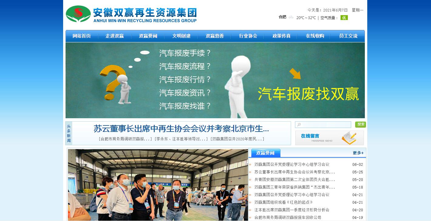 安徽雙贏再生資源集團(簡稱安徽雙贏集團)由安徽省供銷商業(yè)總公司控股,安徽雙贏再生資源集團有限公司為母公司,總注冊資本15億元,現(xiàn)有總資產(chǎn)169億元。