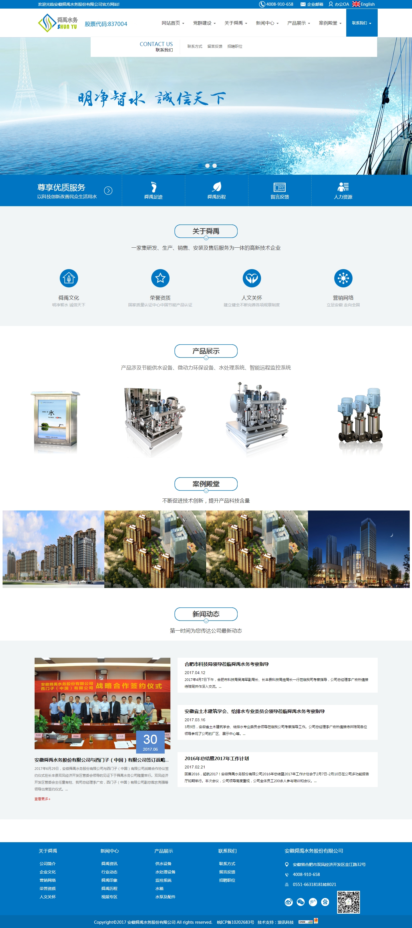 安徽舜禹水務(wù)股份有限公司成立于2011年,坐落于合肥市雙鳳經(jīng)濟(jì)開(kāi)發(fā)區(qū)核心區(qū)域,總股本9521萬(wàn)股,公司股票代碼為:837004,是國(guó)內(nèi)二次供水行業(yè)率先掛牌的企業(yè)。