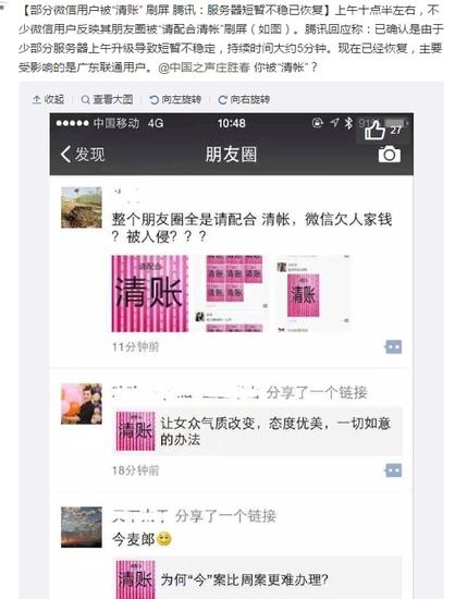 7月22日上午動靜,今天上午很多網友表示自己所發的微信朋友圈圖片被強制替代成請配合清賬的圖片內容。對此,騰訊方面回應稱,是因為少