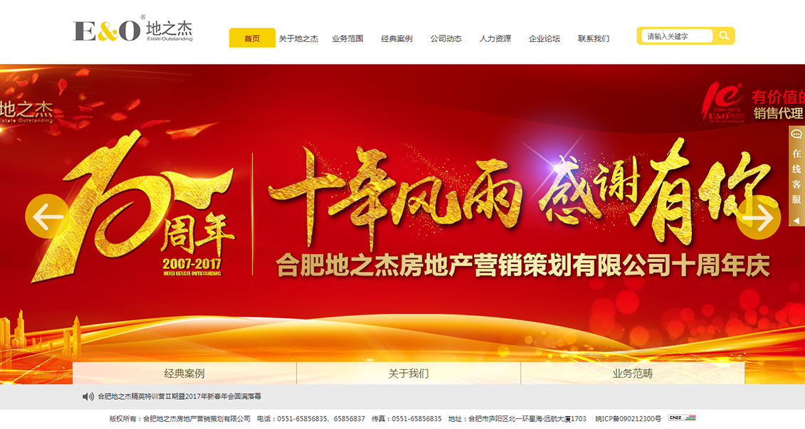 合肥地之杰房地產営銷策劃有限公司成立于2007年.公司自成立以來,始終把自己定位于專業地產顧問 公司:以合肥立足點專注地為安徴二.三線城市地產商服務.此務范圍涵兼住宅地產,商業地產以及體育、 休閑、旅游等綜合類地產:業務領域渉及到前期投資咨詢、開發顧問、產品規劃設計踴問、銷售代理.銷售回 款廣告策劃與推廣'活動組織與執行,物業顧問等地產開發投資十幾個環節•合肥地之杰努力做安徽本土領先的地產綜合服務商!