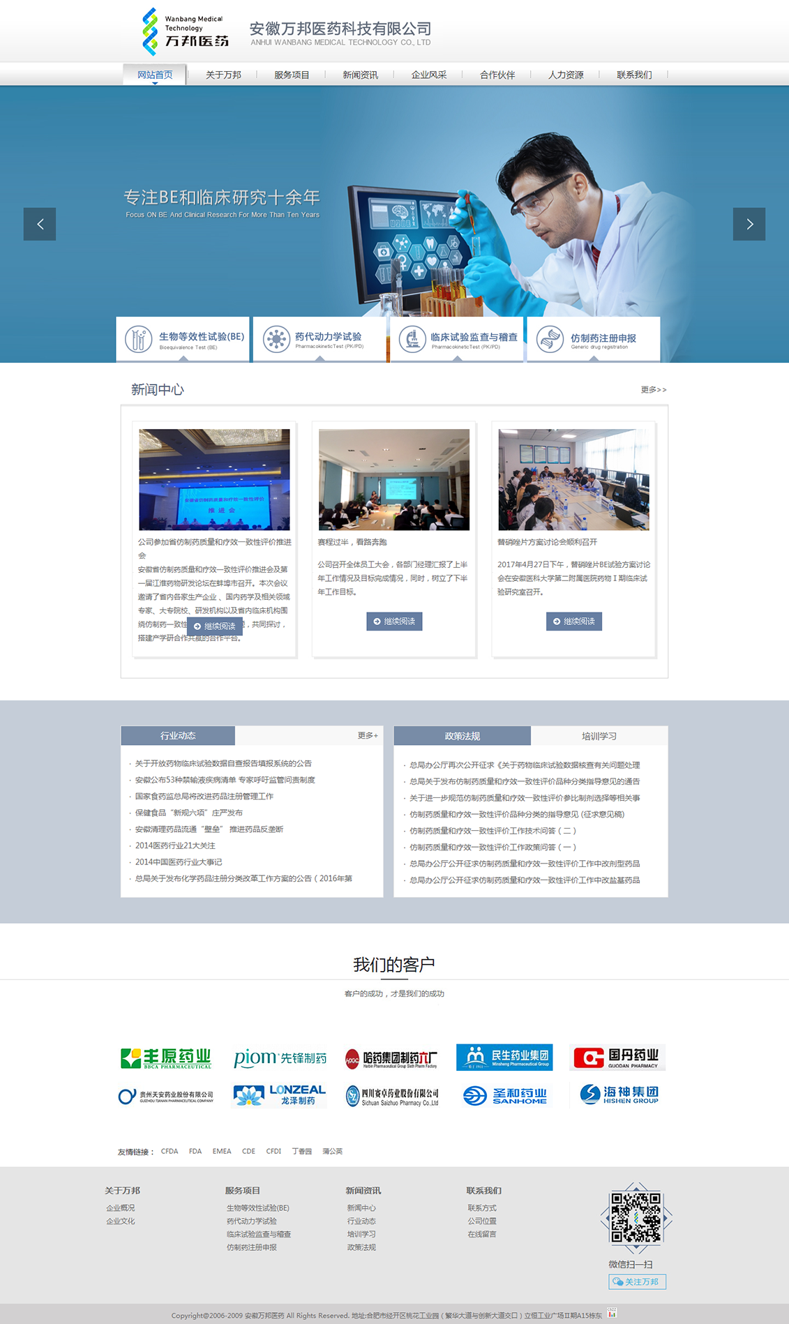 安徽萬邦醫藥科技有限公司于2006年成立于科教之城合肥,是一家為藥品生產企業提供仿制藥一致性評價、人體生物等效性試驗、人體和動物藥代動力學試驗、臨床稽查和監察等技術服務的國家高新技術企業。目前與國內多個臨床機構擁有緊密的合作關系,已完成生物等效性試驗和藥代動力學試驗共計200余項,項目經驗豐富,是國內新藥臨床研究領域較有影響力的CRO公司之一。