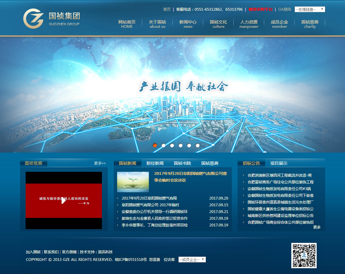 安徽國禎集團股份有限公司是1994年6月經安徽省人民政府批準設立的股份制企業集團。公司秉承創始人李煒先生倡導的“產業報國、奉獻社會”的企業宗旨,弘揚“誠信、勤儉、競爭、創新”的企業精神,把握“社會的需求就是我們企業發展的方向”,致力于發展與社會民生密切相關的環保水務、清潔能源、生態利用、環境修復和健康管理五大業務板塊。