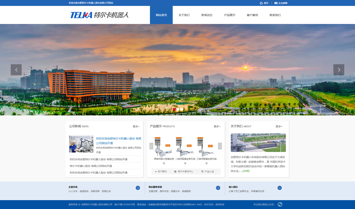 特爾卡公司專業從事工業機器人及其自動化生產線的研發、設計、制造、銷售及服務。公司依托中國科學技術大學頂尖研發團隊,成功開發了機器人控制、系統軟件等先 進核心技術,憑借自身出色的工程集成、技術服務能力以及豐富的工程經驗,為企業設 計、制造機器人系統及自動化生產系統,打造智能化的未來工廠,致力于開創中國制造業智能化發展的新時代。